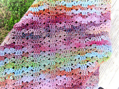 A stunning shawl/wrap pattern created in short rows. Easy 3 row repeat with a nice texture that looks amazing in self striping yarn or a solid color.