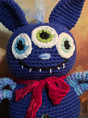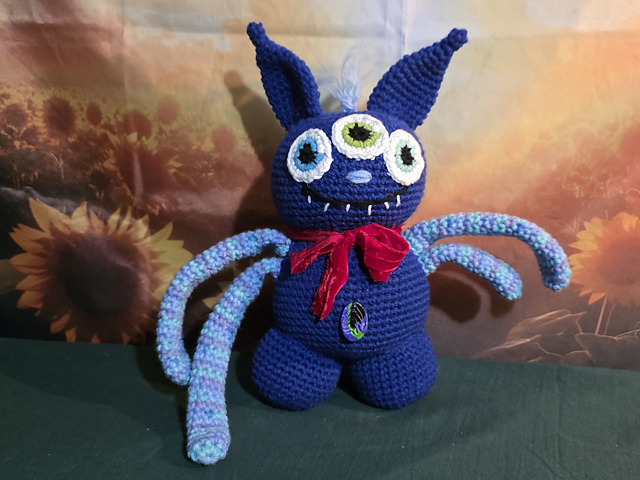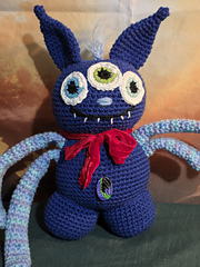 Yarn: Worsted weight in Darker Blue, Lighter Blue, Black, White, Red, and 3 colors of your choice for the irises.