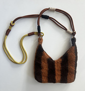 AUTRES MATÉRIEL : cordes, ruban ou autre pour la bandoulière de votre choix, mousquetons ronds 2 cm de diamètre, aiguille à laine, ciseaux