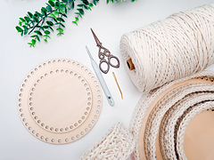 These trays are worked in the round using a wooden base, creating a sturdy foundation and a clean, polished finish. You'll begin by attaching yarn directly into the pre-drilled holes of the base to establish the foundation round, then continue working upward to build the sides of the tray.