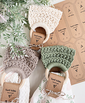 The pattern also includes a step-by-step video tutorial and bonus printable tags for gifting or displaying your finished towel holders at markets.