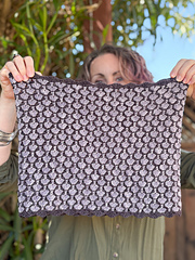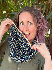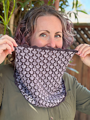 An array of little fans stack and tile all around this neckwarmer. The stitching is rhythmic and the fabric is fluid, thanks to working into chain spaces. Choose two contrasting colors of fingering weight yarn, and watch as your own Fine Fanfare emerges!