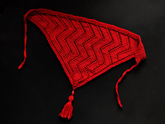 Keep your head cool or your face protected while out and about. The lacy motif resembles flowing water, but it also makes this bandana breathable and interesting to make. It is worked bottom-up from a point and can be increased to any size, due to the easily repeated motif.