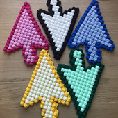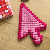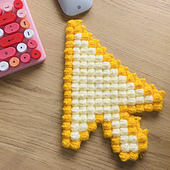 A 90s cursor crochet project with a mix of textured and shaping techniques. Using a 4 mm hook and acrylic yarn, the finished piece measures approximately 25 cm × 16 cm / 9.8 in × 6.3 in. The final size can vary depending on your yarn, tension, and hook choice.