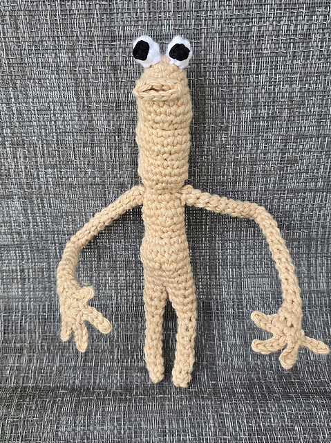 • Worsted Weight yarn in skin color and small amounts of white and black (I used I love this cotton)