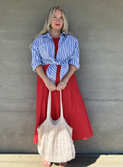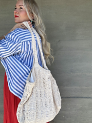 The Bolsa Bag is a spacious and stylish summer knit, perfect for carrying everything from your latest project to beach-day essentials. Featuring a delicate yet easy lace pattern and long, comfortable handles, it’s both practical and beautiful.