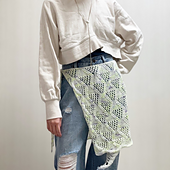 This skirt is worked from the bottom up. The skirt body is worked by repeating the Filo Lace pattern, and an I-cord belt is added at the end.