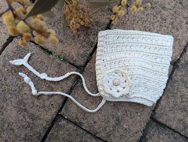 The Flòraidh Bonnet - A Scottish Gaelic Flower is a sweet hat that will make any newborn absolutely adorable! It features simple stitches, tying straps with leaves and a flower applique that gives a fairytale vibe to it. Easy to put on and wear, the Flòraidh Bonnet is comfortable and warm. It will make the perfect gift for baby showers or your first crochet project for your new baby.