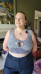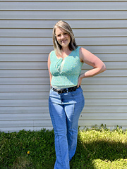 This pattern is a made to measure design, this means you take your own measurements at the beginning as instructed. This means the crochet top can be made for any size and age.