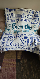 After several requests for a wedding word blanket, I would like to introduce "From this Moment". It is a picture blanket, 166 stitches x 228 rows featuring lots of wedding words and symbols.
