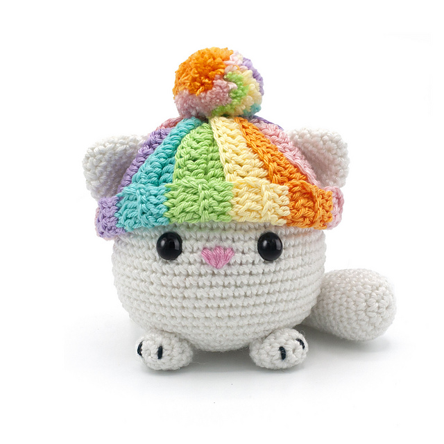 Learn to crochet this Molly the Cat with rainbow hat Amigurumi with this free and easy pattern. This cute easy design is perfect for beginners.