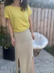 The Morning Light Skirt is a lightweight crochet skirt worked top-down with a subtle A-line shape.