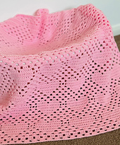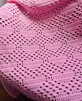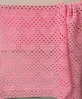 The photos shows the baby blanket size, the pattern includes **instructions for baby, lap, throw, large throw, bedspread sizes**.