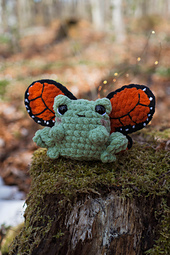 Enchanted Froggies PDF crochet pattern is a whimsical collection of magical frog plushies, inspired by forest spirits and tiny fantasy creatures. This pattern includes 3 adorable frog designs: a frog with a mushroom hat, a butterfly frog, and a bee/fairy wing frog.