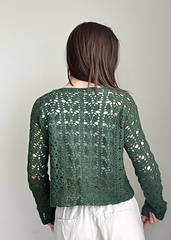The construction of this cardigan is straightforward and does not involve complex shaping techniques. However, the leaf stitch pattern requires careful attention and may take some time to become familiar with.