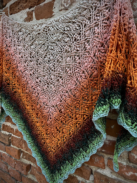 Demo shaw: 1450 m yarn, 4 mm hook, 195 × 80 cm
