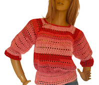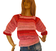 The Rose Horizon Blouse is a lightweight, airy crochet design featuring soft pink tonal stripes and delicate openwork rows that create a beautiful balance between structure and flow.
