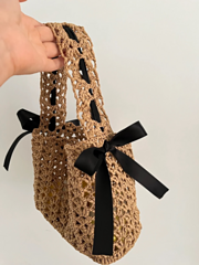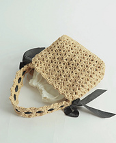 This pattern creates a lightweight raffia tote with a clean, structured shape and a natural summer feel. The design is simple yet elegant, making it perfect for everyday use or warm-weather outings.