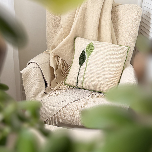 striking leaf pattern that will accentuate any couch or chair. It is made up of two identical squares and an i-cord binds the sides together and gives it a beautiful decorative edge.