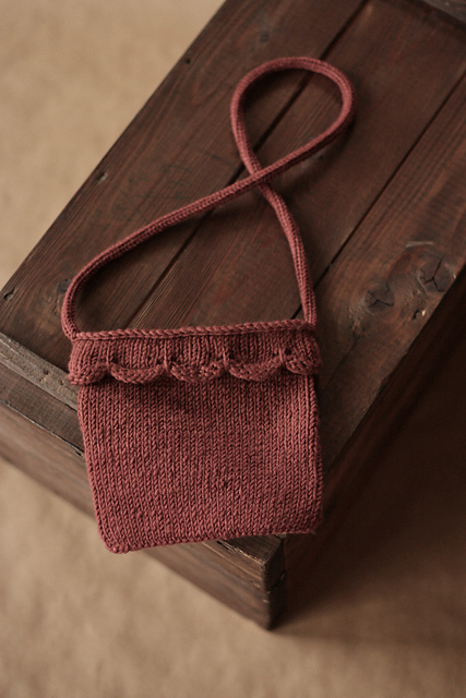 Miss veske strikkes rundt i glattstrikk. Arbeidet legges til side, mens mønsterborden strikkes. Deretter strikkes mønsterborden sammen med vesken, samtidig som det felles av. Snoren strikkes til slutt, og sys på vesken.