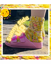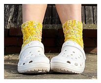 A cute pair of shortie ankle socks featuring different textures and a very simple design perfect for beginners and experienced crocheters alike, crocheted from the cuff down with a heel flap and turn, crocheted with a 3mm and 4mm hook and 4ply yarn.