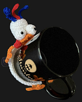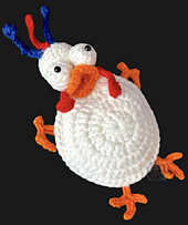 This beginner-friendly pattern creates a 3D chicken that sits on your table until you place your cup/mug on it. The weight flattens the chicken into a coaster.