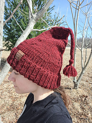 This hat is knit with yarn doubled, so it’s super fast, extra cushy, and warm.
