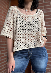Breeze Tee è una semplice maglietta estiva con scollo ampio e morbido, con vestibilità leggermente oversize, perfetta per un look moderno e naturale. È un progetto ideale per i principianti, facile e veloce da realizzare.