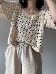 The Breeze Tee is a simple summer tee with a wide, soft neckline and a slightly oversized fit, perfect for a modern and natural look. It is an ideal project for beginners, easy and quick to make.