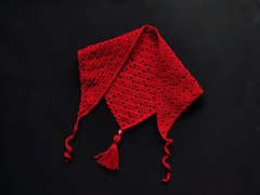 Keep your head cool or your face protected while out and about. The lacy motif resembles flowing water, but it also makes this bandana breathable and interesting to make. It is worked bottom-up from a point and can be increased to any size, due to the easily repeated motif.