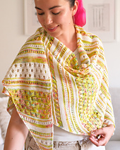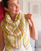 - The body of a shawl is formed by a sequence of stripes in three stitch patterns: Garter Stripe, Eyelet Stripe, and Fern Stripe (textured lace).