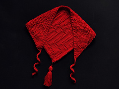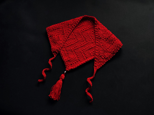 Keep your head cool or your face protected while out and about. The lacy motif resembles flowing water, but it also makes this bandana breathable and interesting to make. It is worked bottom-up from a point and can be increased to any size, due to the easily repeated motif.