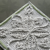 Snowdrop is a Afghan square that is made in Image Overlay Crochet, a technique that involves a background layer and an image layer that are created at the same time.