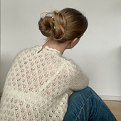 The blouse is constructed from the bottom up, giving you great control over the length of both the body and sleeves as you go. As a unique design detail, the blouse is finished with crocheted edges, providing a sharp and modern look rarely seen in classic hand-knitting.