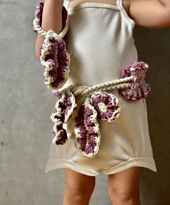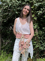 This set is the second addition to my artistic "KISS ME" collection and is designed to awaken your romantic, cottagecore and artistic side. It’s a feminine vintage boho accessory that blends rich 3D curly textures with playful floral accents. Whether you wear it as a waist-defining belt or renaissance corset over a dress/tunic or a memorable textured bracelet, it’s bound to be an attention magnet and the perfect companion to the [Kiss Me Ruffle Tote Bag.][1]