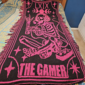 Mosaic Crochet Tarot Gamer pattern in both Reversible and standard Mosaic Overlay. The pattern is provided as written instructions and as a graph for each of the reversible and standard Mosaic Overlay.