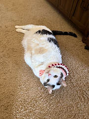 The pattern is fully customizable to fit any cat or dog neck size. (Sample measures approx. 4.5cm wide and 60cm long including ties).