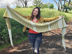 This shawl was designed in collaboration with the dyer, and Ethan has designed an exquisite knit sister shawl pattern that uses the same three shades of green: [Nan-tathren Shawl][1].