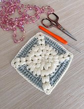 This design features a soft, dimensional puff stitch 3D Granny Square Crochet Pattern framed by a classic square border — perfect for blankets, bags, pillow covers, and modern crochet projects.