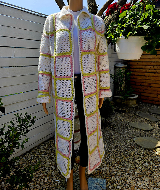Maxi coat with granny squares