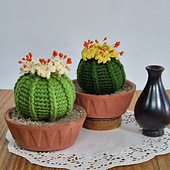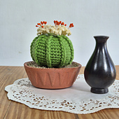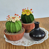 Crochet ball cactus with flowers pattern. pdf pattern for crochet cactus plant.