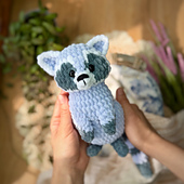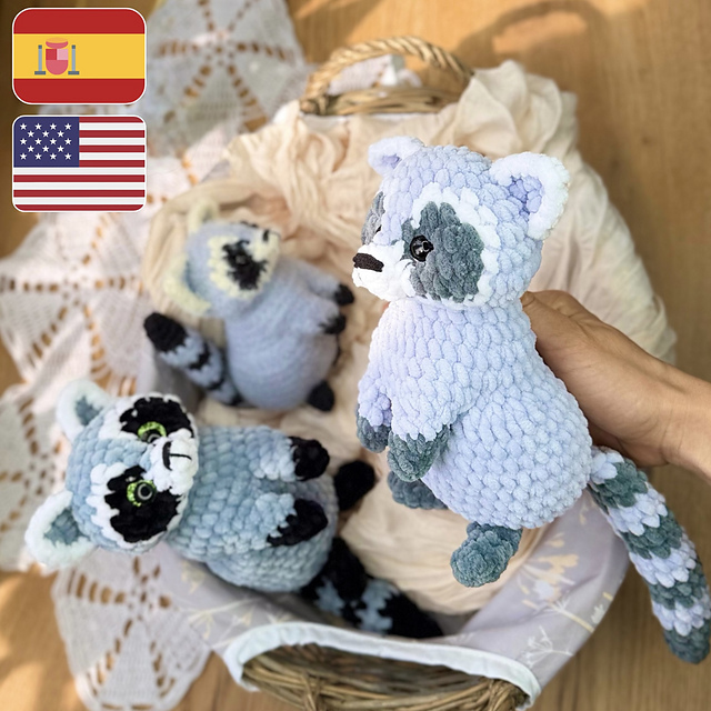 La cabeza y el cuerpo se tejen en una sola pieza. Las patas y la cola se unen a medida que se teje. Solo las orejas se cosen.