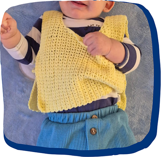 El Chaleco Bebé es una prenda de media estación, ideal para quienes se están iniciando en el tejido a crochet.