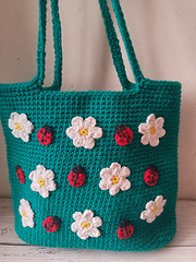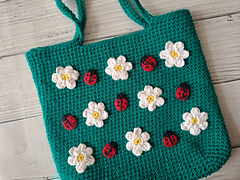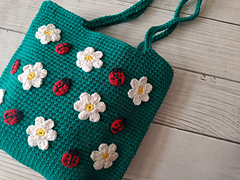 The bag is made using medium worsted weight yarn and G/4 mm crochet hook and for the applique I used sport weight yarn and 2 mm crochet hook.