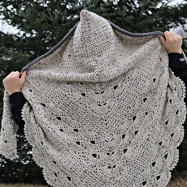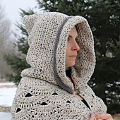 This pattern is how to crochet and attach a hood to your Victoria’s German Shells Shawl. Use the yarn you used to make your shawl.
