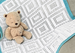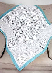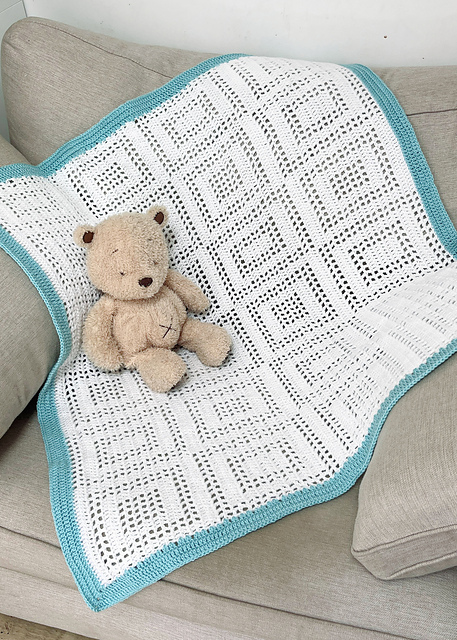 Introducing the Peekaboo Panel Baby Blanket – a charming filet design featuring perfectly placed offset boxes that create a playful, modern look.