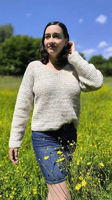 Darf ich vorstellen? Das ist der Pullover Elena. Er hat ein schlichtes, zeitloses Desgin und lässt sich dadurch zu fast allem kombinieren. Auch Häkelanfänger dürfen sich ruhig an diese Anleitung trauen, denn der Pulli ist ein absolutes Einsteigerprojekt. Also wer sich an sein erstes großes Häkelprojekt wagen möchte, für den ist dieser Pullli genau richtig. Für alle anderen natürlich auch:) Ein kleines Highlight ist die niedliche Schleife am Rücken, die den Pullover zu etwas besonderem macht. Also ran an die Nadel, dann kannst Du Dich bald in Deinen neuen Pullover kuscheln.