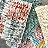 Discover a fresh and playful take on crochet construction with this dishcloth/motif! Each of the four linen stitch squares is created individually and joined together as you work your way around. It's a fun and engaging make as well as a great way to level up your crochet skills!