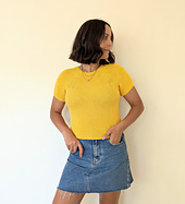 The Sol Tee is an innovative knit-look project that is crocheted sideways in one single panel.