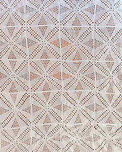 Each square grows from a center ring outward through 12 rounds, building a solid double crochet frame in the first four rounds before opening into a diamond-ridge lattice in rounds 5 through 11. The lattice widens symmetrically from the center of each side — one additional repeat per round — until the diamond fills the square completely. A final round of single crochet closes and frames each motif.
